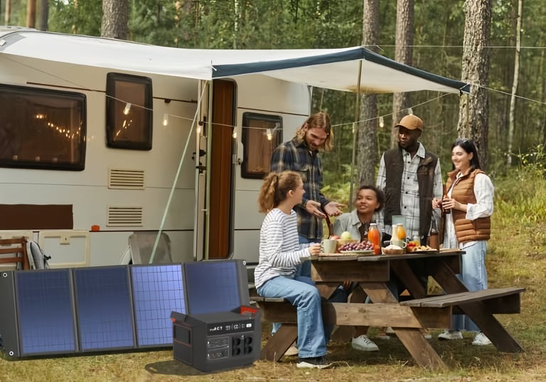 Kelionės kemperiais (RV): Veikia kaip pagalbinis maitinimo šaltinis, leidžiantis naudoti smulkią buitinę techniką, apšvietimą ir pramogų įrenginius stovėjimo metu, nejungiant variklio.